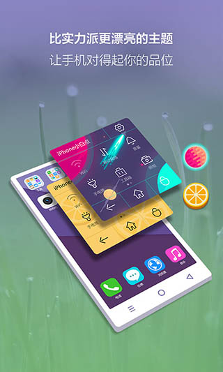5、自定义快捷方式,打开手电筒、启动照相机、开关WIFI和移动数据、调节音量和亮度等。