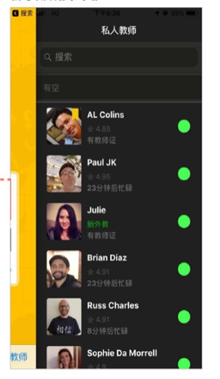 5、在“私人教师”页面选择外教,就可以开始练习咯~