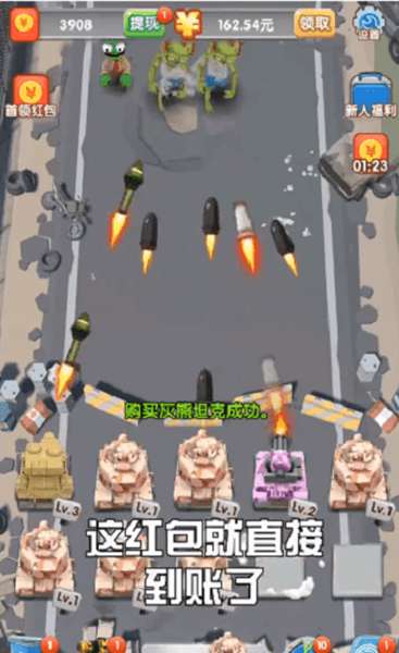 4、每次你路过的时候,都会收到红包,在这里,你可以在各种要塞阻止敌人移动。