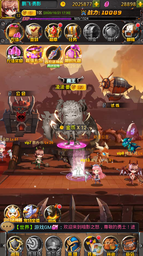 充值比例1:2000★上线就送VIP7、氪金28888、金币200万、6大职业角色、超值月卡!