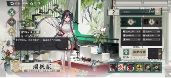 蝠桃瓶:作为一名输出型构术器者,蝠桃瓶的主动技能相对常见,单体群体兼备,且具有2格施法距离的优势,而她的被动技能“粉彩桃纹”可以通过消耗能量来逐步提升自身伤害。