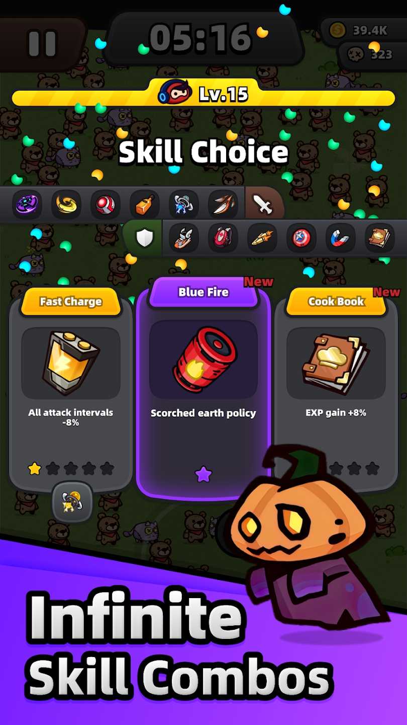 3、在游戏的过程中,还可以选择各种技能,每种技能的效果不同,玩家可以根据情况选择