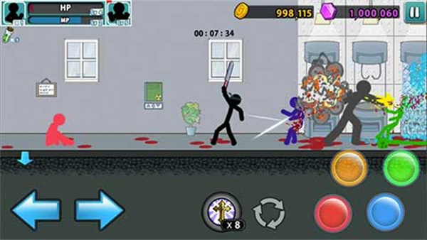 《愤怒的火柴人5》是一款横屏操作的动作冒险类手游,该游戏是《愤怒的火柴人》的第五部正统续作,游戏保留了前作中的基础玩法,并且新增了大量的角色以及地图场景等等,游戏主要通过横版2D街机格斗闯关的方式向玩家呈现,我们在游戏中需要一路前进,只要是出现阻止的反派就将他们统统打趴下,多个火柴人角色供玩家选择,并且每个不同的火柴人角色技能和攻击方式都各不相同哦!喜欢街机格斗的小伙伴来试试这款游戏吧。