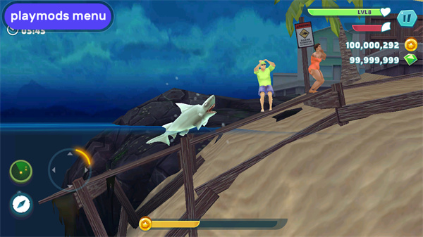 4、完成50个任务,寻找宝物取得金币与宝石,用来升级你的鲨鱼或者购买特殊救生道具。