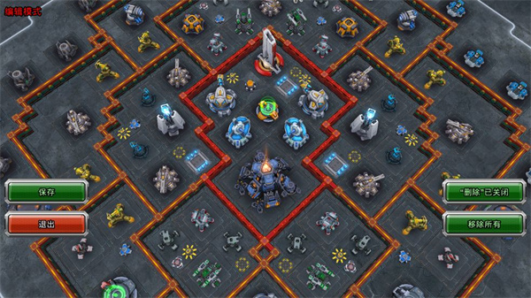 4、用激光塔、导弹发射台、大炮、城墙以及地雷防御基地