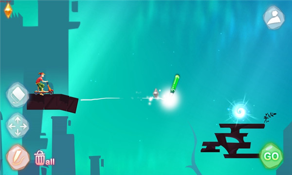 总体来说,游戏自由度颇高,为拓展玩家的思维,通过绘画出合适的路线,驱动单车收集沿途的梦想碎片,奔向远方的世界入口,游戏前期会显得比较的简单,但随着时间的推移和关卡的进行会慢慢变难。在游戏中抵达终点并不是唯一的目的,需要合理躲避以及利用关卡障碍,收集全部星星才能完美过关。