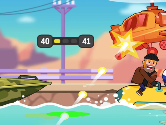 4、右手控制机枪方向,在水里也可以消灭岸上的敌人。