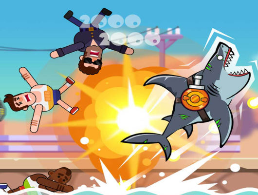 2、左手控制前进方向,可跳出水面袭击游客。