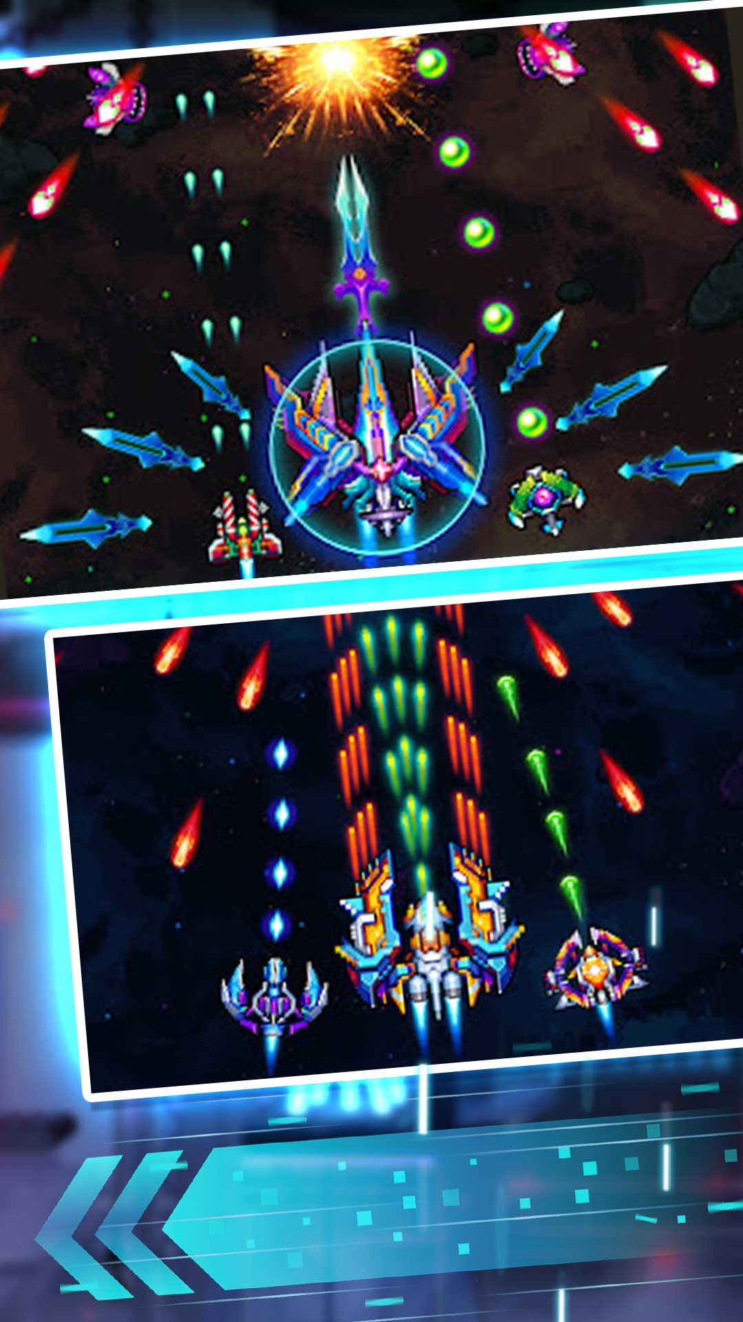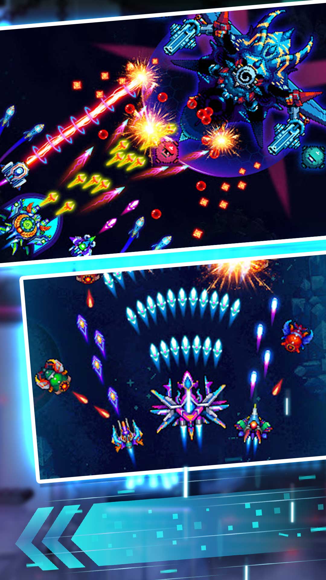 延续经典弹幕玩法,引入多种独特的关卡模式,并加入令人陶醉的战场配乐。体验游戏中的关卡环节,老少皆宜的感觉。