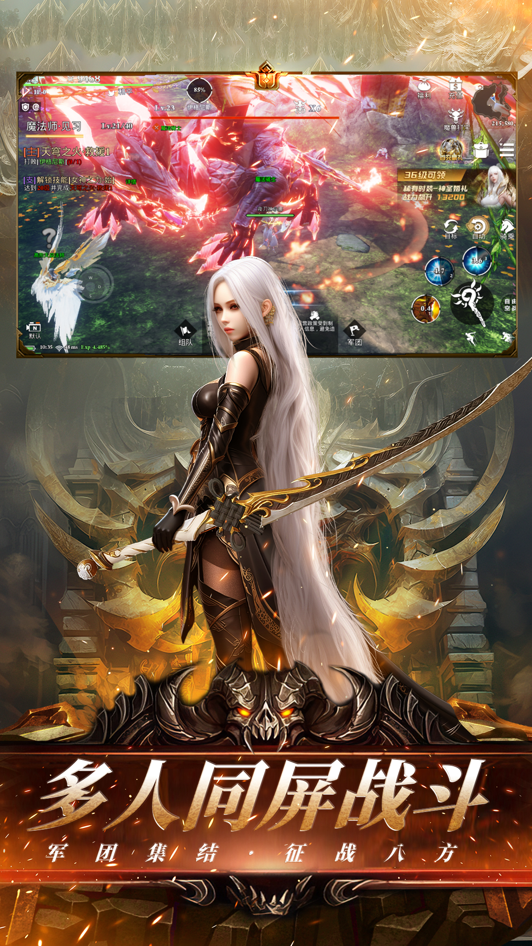 立体社交系统,实时语音互动,让你和兄弟无延迟组队开荒,联合挑战强大的世界BOSS,也可随时随地PVP单挑绝杀。更有100v100,200v200,300v300超级军团对战,冰火雷电瞬时爆发,潮水般的大战震颤整片大陆!
