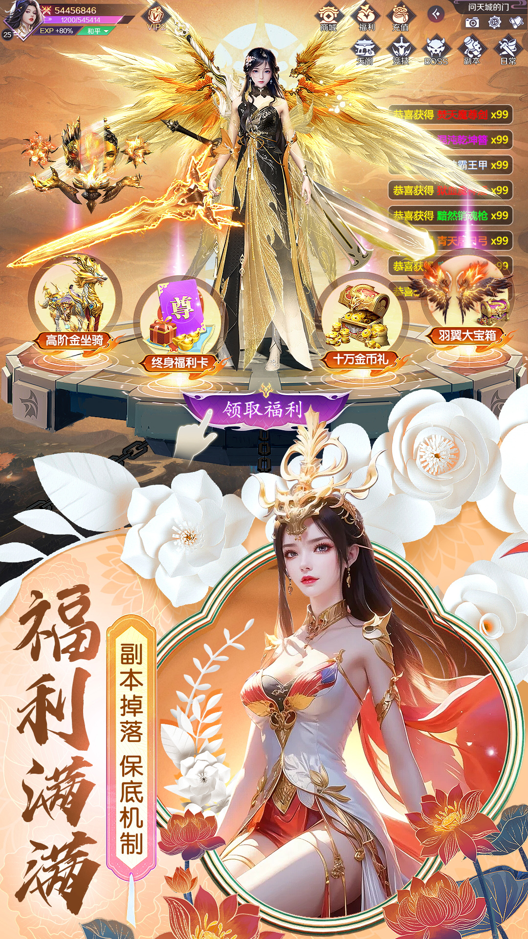 3、随时开打的跨服战斗:王者跨服团战开启,在上古纷争中体验数万人同台大战激情PK,体会自由流畅的比赛快乐;