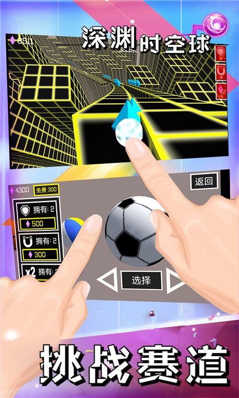 1、玩家控制球球躲避障碍物,并且还要收集钻石,解锁商店皮肤。