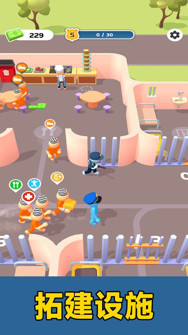 2、各种资源提供给你,合理的进行分配,升级你的监狱,扩大场地规模。