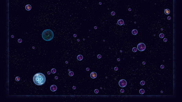 5.当玩家进行星球移动的时候,要注意,当玩家点击星球进行喷射气泡时,玩家的星球将会逐渐变小,而吞噬其他星球则会变大。
