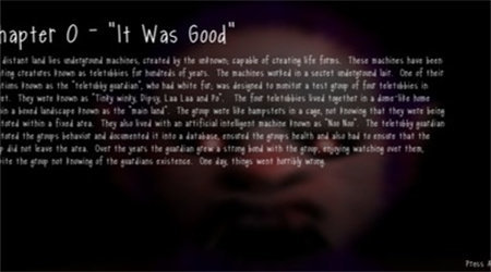 《鬼畜天线宝宝三》是一款横屏操作的动作恐怖冒险类手游,游戏是根据小时候的动漫《天线宝宝》改编而来的一款恐怖作品,在游戏中我们又回到了天线宝宝们生活的的地方,原本风和日丽的一天却发现伙伴变成了非常恐怖的怪物,它脸上那狰狞的表情看着就充满敌意,而我们需要通过不断的收集物品并躲避变异的天线宝宝,整个游戏过程非常紧张刺激,胆子大的朋友赶快来下载体验看看吧。