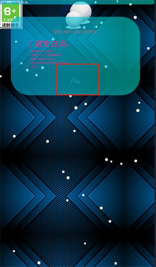 进入游戏后要控制一颗白色的小球在源源不断飞来的白色方块中生存下来,避免碰到白色方块;