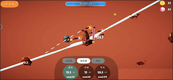 3、将副武器的激光提升到13.5,导弹提升到13,电流提升到58.5。