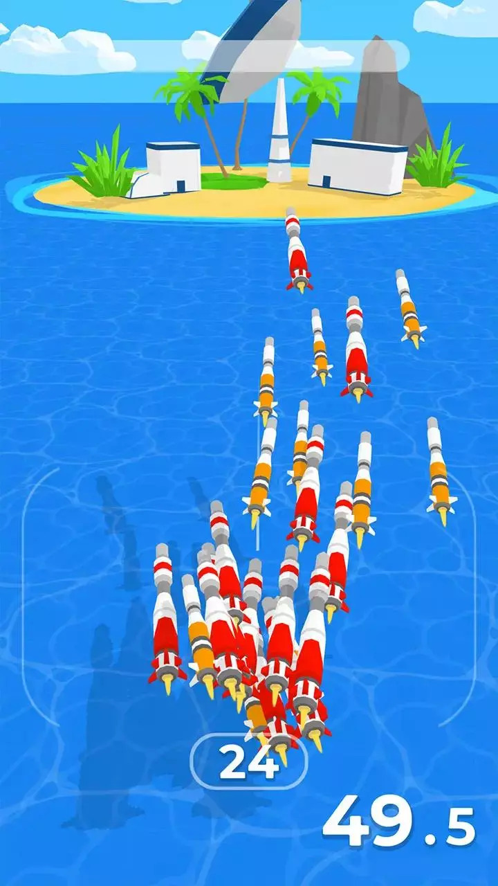 《超级导弹罢工》是一款竖屏操作的休闲益智闯关类手游,游戏采用了3D建模制作,物体模型和地图场景看起来都是非常立体逼真的,玩家在游戏中需要通过滑动手机屏幕的方式来控制导弹的左右移动,而你为了炸毁前方的信号塔需要通过各种不同的buff之门来增加导弹的数量,当然肯定是越多越好,直到最后炸毁目标基地的画面一定会吸引到你,赶紧拿起手机来下载体验看看吧。
