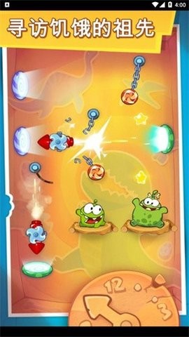 1、游戏以主人公Om Nom发现一台时光机器为开始的设定。