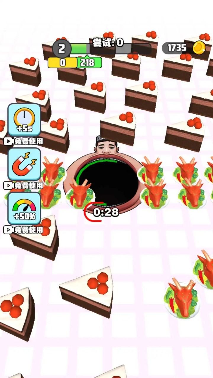 3、而在关卡中,时间的限制加之黑洞嘴巴的大小,所能够在规定时间内获取的食物量是有限的;