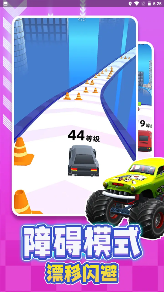 2. 通过手指操控方向盘,精准指导赛车在坡道上穿梭,巧妙躲避障碍和其他赛车。