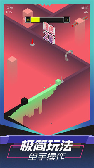 每个场景都不断变化颜色,独特的色彩搭配,每一关都是全新的挑战,完美体现跑酷快感。