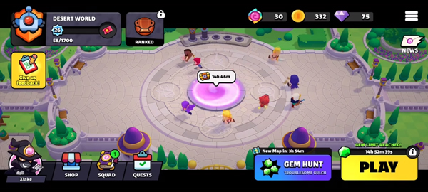 和一个朋友组队对抗其它三个队伍。收集到最多宝石的队伍获胜。获胜队伍分享战利品,失败也能得到。有任务、表情、皮肤、5v5、排名模式。所有角色都有特殊技能。