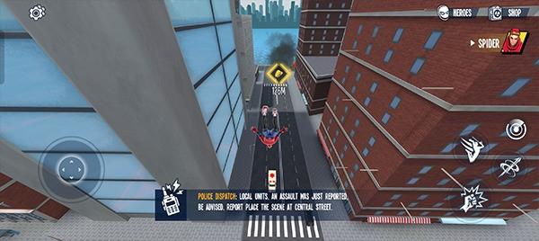 2. 超级英雄战斗・高自由度体验:可自由组合蛛丝缠绕、高空俯冲等招牌技能,搭配多场景战斗模式(街头对决、高空追逃),丰富玩法还原英雄实战感,享受沉浸式战斗乐趣。