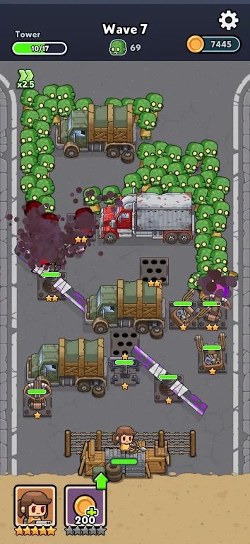 使用您在每一波之前赚取的金币来购买和升级塔,并看着您的防御随着僵尸群的逼近而生机勃勃。