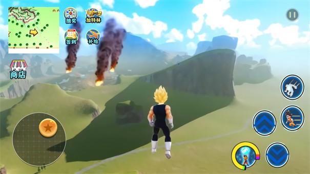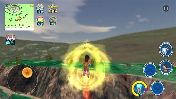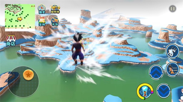 1、使用舞空术的技能即可上天入地、自由飞行,进行地图探索。