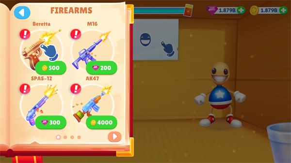 5、不停的打木偶人可以获得钱币,用于解锁更多的道具。玩家进入游戏就可以对木偶人做一系列的操作。