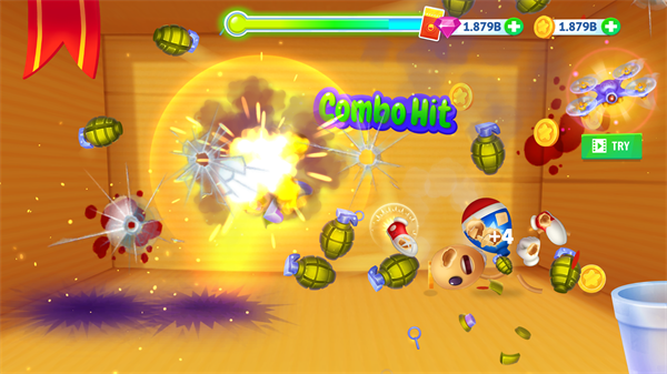 1、在本站下载并打开游戏后可以直接进入关卡进行游玩。上方进度条代表玩偶血量,将绿色进度条打满即可获得奖励,右上角钻石和金币已经被破解为无限,玩家可以自由使用购买道具。左上角是设置以及道具、武器等内容,点击即可查看。