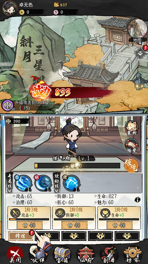 2、在修炼界面玩家可以对自己的角色进行养成。