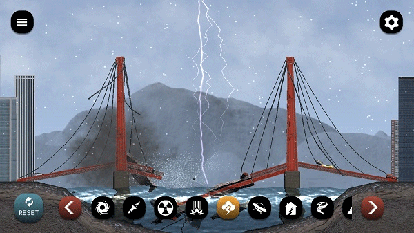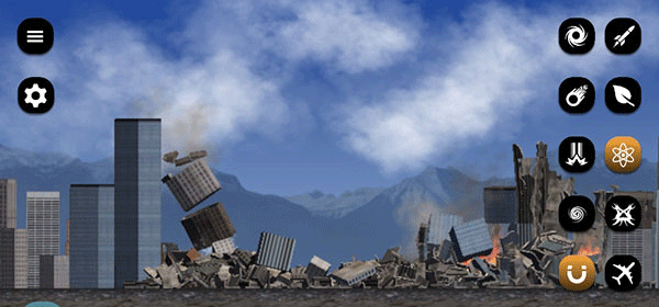 1、想尽办法的破坏城市,可以使用各种武器,诸如黑洞、风暴、闪电等,只要能摧毁城市,还可以修改这里能力的威力和效果呈现范围,通过自定义设置,实现掌控城市存在与否的神仙般操作。
