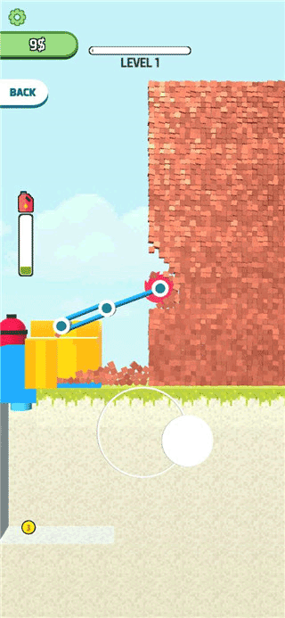 4、按住下方屏幕中的按钮进行操控便可开始拆墙啦