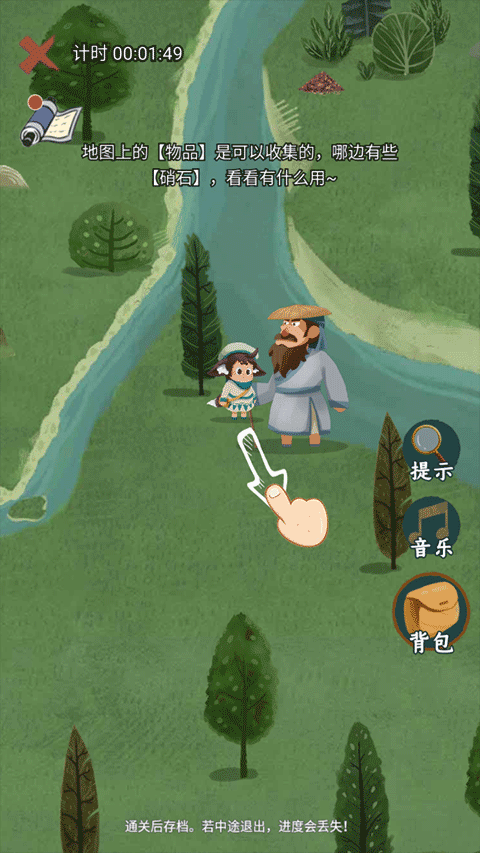 7、得到河图之后,就可以去救治水灾,接受各种的任务成功救治水灾,但在路上还会有各种考验等着你。如果遇到困难可以点击右下角的提示来进行游戏。