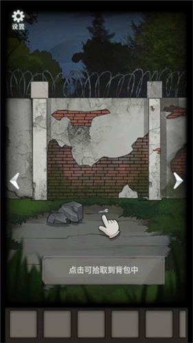 4、点击石头,石头挪动,后面出现大门钥匙,点击拾取。