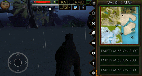 2、点击左上角的恐龙图像可以开启更多界面,如下图所示,玩家可以查看自己的等级,经验!右下方是生命值、力量、敏捷的属性,玩家还可以点击地图标志来查看自己的位置。