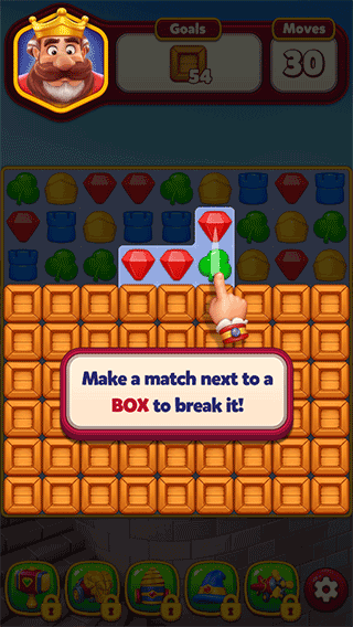4、除了三消解谜,你还可以通过完成关卡赚取金币,解锁和建造王国的不同区域