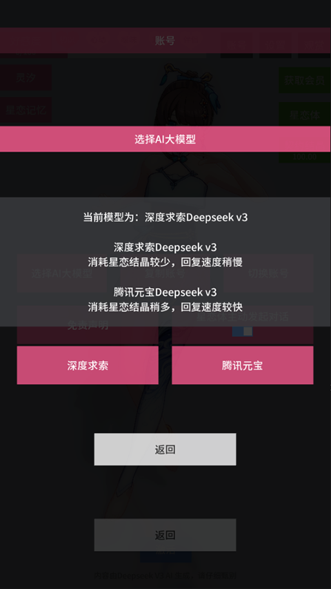 深度求索Deepseek v3:消耗星恋结晶较少,回复速度稍慢