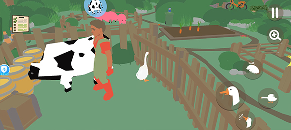 1、在本站下载安装好捣蛋大鹅模拟器,运行游戏并进入游戏,然后将鹅移动到牛棚的门旁边用嘴推开门,等牛跑出去;