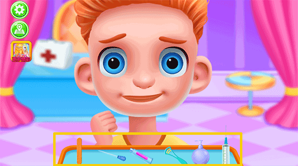 2、随机给小朋友们查看卫生情况,这里举例口腔卫生情况,下方有道具,从左用到右;