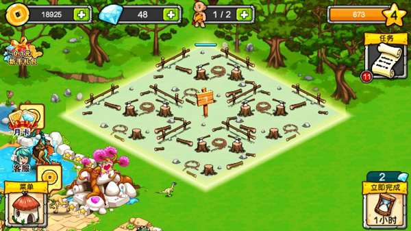 1、随着等级提升,玩家能够领养的恐龙越来越多,除了各种恐龙巢穴、饲养员住所等基础设施占据土地,想让家园更美、领养更多恐龙,必须扩大庄园扩建领土!在原始森林中,只需要对扩建的地方轻轻点击,使用少数饲养员就可对庄园进行扩建。