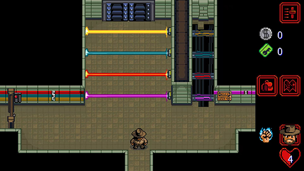 9、如图,房间已经打开,进入到新的房间,需要找到藏在不同位置的开关把激光防护网关闭,