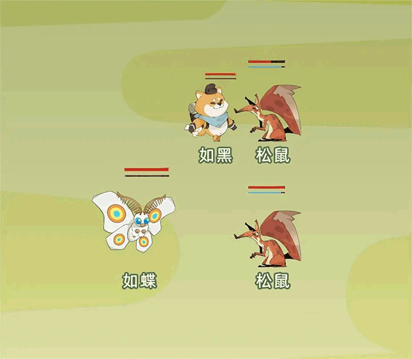 在战斗时,分为血条和行动条,当行动条满了之后即会攻击一次,血条没了之后就会倒地。让你的徒弟和你全部死亡之后,就会概率结束游戏。