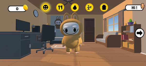 1、打开会说话的拉布布游戏,进入游戏如图,玩家可与拉布布对话互动;