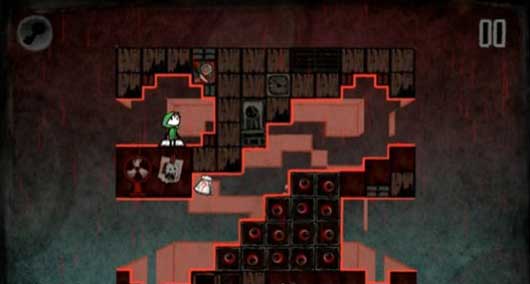 4、然后从中间跳下去,第一次踩按钮。再跳一次到向左拐去吃钥匙。