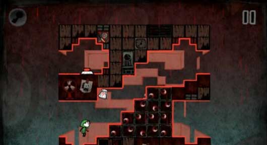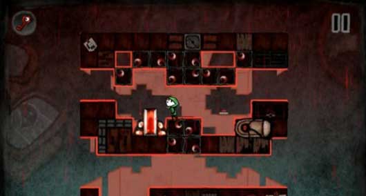 6、第三个场景踩下按钮以后从左边跳下来,落到左上的平台上,然后沿路前进进入门内解开顺利过关。