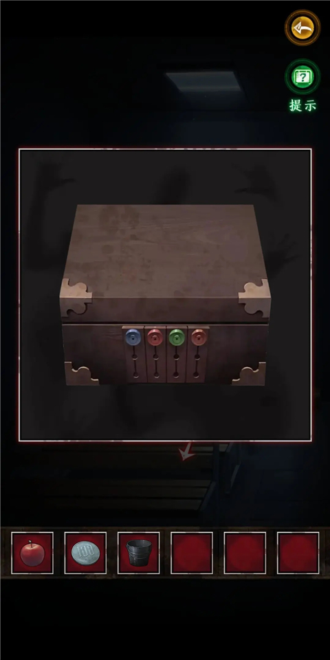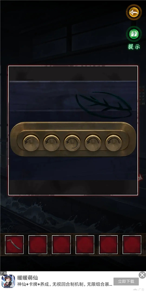 4、根据箱子上叶子的提示,观察叶子动的幅度可以分为微弱,中等,大幅度,简称123,观察后得出密码为12321。得到红蜡笔,拼图碎片和笔记本。
