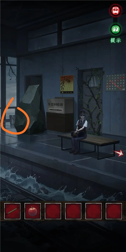 2、根据数字和圈圈形状得出,2△4○3■,依次输入列车锁的密码,用撬棍打开列车门,得到苹果